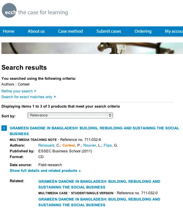 Ce cas a été publié par l’ESSEC, il s’agit d’une simulation d’entreprise multimédia dans laquelle les étudiants sont placés dans la situation de gérer Grameen Danone au Bangladesh, à un moment où le prix de la matière première (le lait) double.